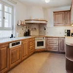 台所の設備の特色は電子レンジ,電気ポットと食器洗い機です. この70m^2のアパ-トはフリ-ドリヒスハ-フェン空港から45km離れています. 顧客は構内のハイキングとサイクリングを楽しめます.